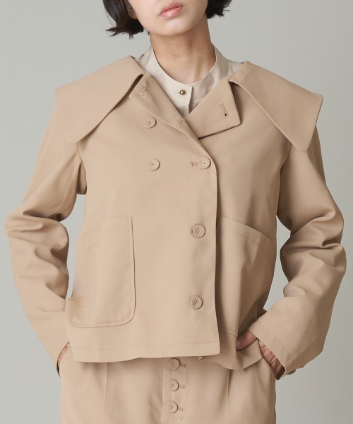 ◆ビックセーラーカラーとボタン並びが可愛い◆ ビックセーラーカラーが可愛いジャケットです。 釦の並びもデザインポイントになっています。 お尻も隠せるぐらいの着丈になっているので、 長すぎず、短すぎない安心感のある丈感です。 同素材のボトムス(A1HJS29072、A1LJS11072)と セットアップで着用できます。 …………………… 透け感:なし 厚さ:普通 伸縮性:なし …………………… ≪お気に入り登録機能の使い方≫ ■商品のお気に入り登録(ハートマークをクリック) 再入荷通知や値下げ等、お得なご案内を受けることができます。