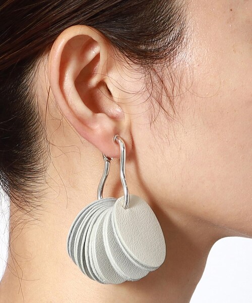 シルバーと革を組み合わせて、存在感のあるアクセサリーを作りました。 【デザイン】 CHERCHIO(チェルキオ)…イタリア語でマル・円の意味 バネ状のおもちゃのように扇状に広がるアクセサリー。平面の円を束ねて立体を作ってます。 曲線のくびれが美しいシルバーフープに軽くソフトなやぎ革を組み合わせました。 革の持ち込みの開き具合でボリュームを調節可能です。 大ぶりなので、シンプルなスタイリングにも華やかさをプラスしてくれます。 【素材】 シルバー925の金具に、柔らかいやぎ革の円モチーフを組み合わせました。 ※ブラック(019)の革の側面が、摩擦により色移りすることがありますので、淡色のものとの組み合わせはご注意ください。 また、ホワイト(003)は、粉のような革の断面がつくことがあります。 モデル情報:身長171cm B80 W59 H88 店舗へのお問い合わせ商品番号:709-01636 ●製品寸法: 00(FREE):全長6.9cm モチーフ直径3.6cm 付属箱H8.5cm 付属箱W13.5cm 付属箱D3cm 備考:重量:約10g(サンプル重量)