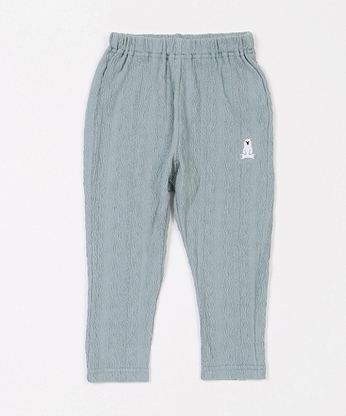 シロクマワッペンのアクセントが可愛いロングパンツです。男女共におすすめのユニセックスデザイン。シンプルのようで実はケーブルの編み柄がほどこされており、コーディネートにおしゃれな雰囲気を演出してくれます。【おすすめの着用時期は秋冬シーズン】【透け感】透けない【生地の厚さ】普通【伸縮性】あり【裏地】なし【ポケット】なし【アジャスター】あり