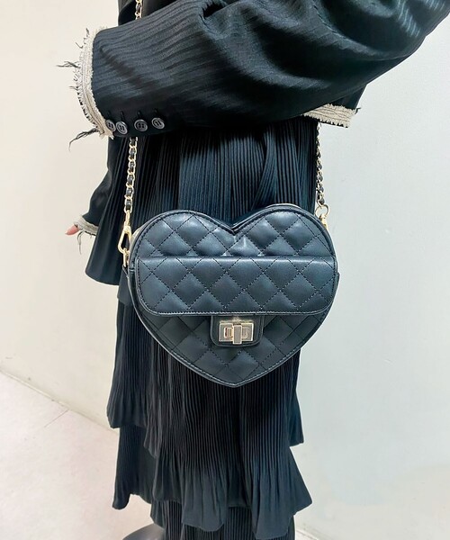 ハート型がキュートなショルダーバッグ。・ハート型×キルト素材が可愛い!・しっかり固めの作りになっており、型崩れしにくい◎・チェーンベルトが大人っぽい印象に!・ガーリースタイルだけでなくカジュアル、大人スタイルにもおすすめ※ポケット数:内側×1,外側×1【お買い物をよりお楽しみいただく為に お気に入り登録をオススメします】お気に入り登録すると、お得な情報や、在庫情報などお買い得情報を受ける事ができます。合わせてブランドのお気に入り登録も一緒にお願いします♪【備考】※商品画像はサンプル商品の為、仕様やカラー等に変更がある場合がございます。予めご了承ください。※光の当たり具合で色味が違って見える場合があります。店舗へのお問い合わせ商品番号:P10-21372●製品寸法:FREE:高さ17.5cm 幅(上部)17cm 幅(下部)10cm マチ6cm 付属ショルダー全長116.5cm備考:重量:約385g