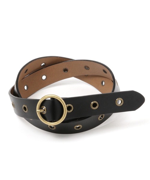 アクセントになる穴あきベルト ハトメがポイントのシンプルで使いやすいデザインのベルト。 スタイリングのアクセントにおすすめのアイテムです。 お好みの位置でサイズ調節ができます。