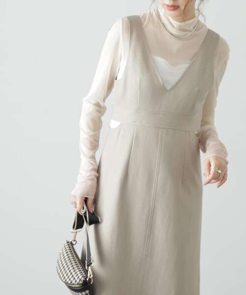深いVネックでシャープに仕上げたジャンパースカート。 <デザイン> 肉感のあるツイルめ素材を使っており、冬まで着られる嬉しいアイテム。 ステッチワークを効かせて、ナローなスカートラインに仕上げたデザインは、後ろにスリットが入っているので足さばき良好。 両わきにはカットアウトデザインを入れ、インにベーシックなニットとレイヤードした時のポイントに。 秋冬はブーツを履くとバランス良く決まります。 <素材> 〇透け感:なし 〇生地の厚さ:厚手 〇裏地:あり 〇伸縮性:なし 〇光沢:なし 〇シルエット:フレア ※モデルの着用画像の場合、光の当たり具合により、実際の色味と異なって見えることがございます。 ------------------------------------------------------ ◆商品のお気に入り登録◆ お気に入りアイテムの値下げ・再入荷・在庫1点などの通知を受け取ることができます。 ◆ブランドのお気に入り登録◆ 新商品や再入荷、セール、クーポン配布などお得な情報を受け取ることができます。 ------------------------------------------------------ ※ご注文いただいた予約商品のお届け時期の確認は、注文履歴ページより行えます。 FREE'S MART/フリーズマート カジュアルをベースに自由にファッションを楽しむ方に向けて、 女性らしさのあるトレンドスタイルをご提案。 日常を少しアップデートするデイリーウェアを展開しています。