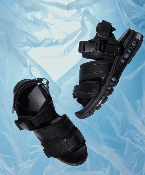 ーーー 定番ラインナップのベルトスニーカーサンダル。 スニーカーソールのようにボリュームを持たせ、 スポーツ要素を取り入れたストラップサンダル。 ーーー □仕様 アッパーにエナメル素材の切り替えと合皮素材を使用した2モデルを準備。 インソール部分にはダイバー素材を使用し、耐水性に優れ特別なお手入れを要しません。 □モデル 合皮素材で切り替えたよりモードに特化したデザイン。 エナメル素材で切り替えたデザイン。 □デザイン インソールにも厚みを持たせ、クッション性だけでなく、脚長効果も期待できるアイテム。 つま先とかかと部分、足首部分の3か所のベルトで細かいサイズ調整も可能となっており、 良質な履き心地を実現した一足です。 ブラック系その他08→エナメル素材との切り替えデザイン。 ブラック09→合成皮革で切り替えデザイン。