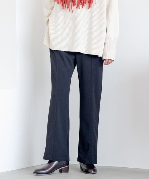 ーーー 美シルエット&伸縮性抜群のフレアパンツ ーーー 【デザイン】 ストレッチ素材ではき心地抜群のスラックス風なパンツ。 程よいフィット感でセンタープレスが入っているので、スタイルアップが叶います。 シワになりにくく、洗濯後のお手入れも楽なのでデイリーユースにぴったりです! 【スタイリング】 ・ベルトループが付いているので。トップスをインしてトレンドのベルトを見せた着こなしがおすすめです。 ・オーバーサイズのトップスを合わせて今年らしい印象に。