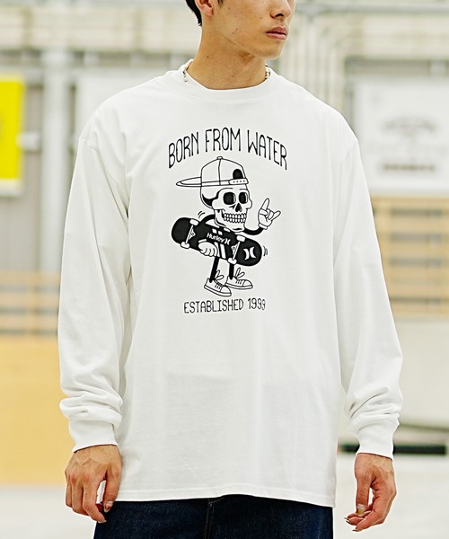 【ヘビーウエイトの長袖Tシャツ。ルーズ感がストリート系におすすめ。】●Detail生地感がやや厚めのヘビーウエイト長袖Tシャツ。トレンドライクなルーズシルエットで、身幅に余裕を持たせた仕上がり。前面のプリントデザインにはストリートな雰囲気が出ているキャラクターを使用。●Stylingストリート系にコーディネートしやすい太めのパンツとの相性抜群。前面のキャラクターTシャツなので、無地のパンツが合わせやすい。フラットバイザーのキャップやスケートシューズとgood!!【Hurley】創設者ボブ・ハーレーは、カリフォルニア、コスタメサにおいてサーフボードシェイパーとしてそのキャリアをスタートし、数々のトップサーファー、アーティストと親交を深めて行く中、サーフの枠にとらわれず、音楽やアートなどを含めた総合ライフスタイルブランドとしてHurley Internationalを1999年に設立。※掲載画像に関しましては、屋外や屋内での光の当たり方やパソコンやスマートフォンなどの閲覧環境によって実際の色味と異なる場合がございます。予めご了承ください。※サイト内でのカラー名と、お届け商品に記載されているカラー名が異なる場合がございます。