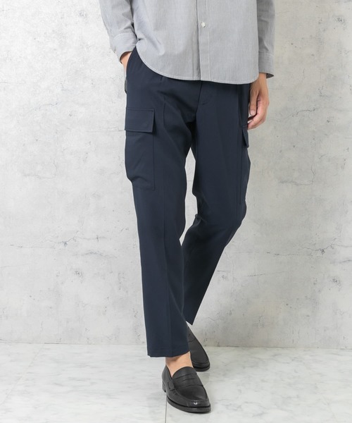GRAY, NAVYはWEB限定カラーです。【大人の新定番。綺麗め見えするコスパ最強のスラックス】高い人気を誇るROSSO MENの傑作シリーズ「ハイパフォーマンス」からカーゴパンツが登場。野暮ったくなりがちなカーゴパンツをストレッチ性のあるスラックス生地で仕立てた履き心地とスマートさを重視した一着はコーディネートしやすく、いま大人が持っておくべきアイテムのひとつ。程よい生地感は、晩夏~秋口はもちろんオールシーズン活躍。また、裾にかけてすっきりとしたスリムシルエットにこだわっており、ジャケットと合わせても◎な優秀な1本です。年代問わず着用できるサイジング、コストパフォーマンスにも秀でた1本として必見です!-MATERIAL-オールシーズン着用できる丈夫なストレッチ素材を採用し、適度なハリと品のある光沢感。きれいめ見えする落ち感のある生地。快適なストレッチ性でコンフォータブル。-DESIGN-ウエスト、ヒップ、もも周りはゆとりのあるサイジングに設定し、膝から裾にかけて徐々に細くなるテーパードがきいたすっきりとした美シルエット。主張しすぎないサイドポケットはシンプルなスタイルにも程よくアクセントを加え普段使いのカジュアルからきれいめスタイルまで網羅。ドローコード仕様のベルトレス対応で程よいリラックス感。カラーは着回しのきく正統派カラーラインナップ。カットソーなどのカジュアルなアイテムはもちろん、シャツやジャケットなどキレイめなトップスとも相性◎-POINT-・すっきりとしたスリムテーパードシルエット・品がありセンタープレスがきちんと感を演出・ストレッチで快適な履き心地・定番デザインでコーディネートを選ばず・色違いで揃えたくなる間違いのない1本・抜群のコストパフォーマンス-COORDINATE-・サイズはジャストサイズがおススメ・キレイめのシャツを羽織るだけで様になるスタイリングに・トップスは何を合わせてもOK・レザーシューズでもスニーカーでもOK【2023 Autumn/Winter】※この商品は、素材の特性上、高湿度や水分で収縮することがあります。※雨や水に濡れた場合は、早めに拭き取り、当て布をしたアイロンで形を整えてください。※その他お取り扱いに関しましては、商品に付属のアテンションタグをご覧ください。※商品画像は、光の当たり具合やパソコンなどの閲覧環境により、実際の色味と異なって見える場合がございます。予めご了承ください。※商品の色味の目安は、商品単体の画像をご参照ください。▼お気に入り登録のおすすめ▼お気に入り登録商品は、マイページにて現在の価格情報や在庫状況の確認が可能です。 お買い物リストの管理に是非ご利用下さい。-----------------------------透け感:なし伸縮性:あり裏地:なし光沢:なしポケット:あり-----------------------------