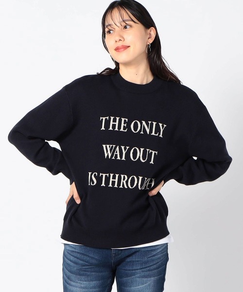 ジャガード配色ロゴニット「THE ONLY WAY OUT IS THROUGH」のジャガードロゴが特徴のニットです。コットンブレンドなので毛足が少なく使いやすい厚みのニットで、秋から春まで3シーズンにわたり長く活躍します。ボディカラーによってロゴの配色が違い、コーディネートによって楽しめます。袖がスッキリしているので、コートのインナーにも迷わず着用出来ます。■point着用した時に程よいゆとりはあるものの、流行のデザインニットほど肩が落ちておらず、袖幅も太くないのでベーシックに着用出来ます。お尻にかかるくらいのちょうど良い長さです。■detail*オフにはグレー/チャコールには赤/ネイビーにはホワイトロゴの配色*ややモックネックデザイン*前後差スリットなし■fabric……………………透け感:なし裏地:なし伸縮性:あり光沢感:なし洗濯方法:手洗い可能……………………※詳しいお手入れ方法は商品タグをご参照ください■coordinate*ライトアウターからダウンやウールコートと秋冬、春先のインナーとして合わせやすいニットです。*デニムに合わせたシンプルなコーディネートでも主役になります。【Grand PARK 】 グランドパークベーシックをより着やすく毎日楽しめる服、普段身に着けるカジュアルベーシックを品質、着心地にこだわり着回しのきくフレキシブルさを追求しています。【お買い物をお楽しみいただく為に】 ▼商品のお気に入り登録 完売カラーの再入荷通知や、ラスト1点の通知、セールの通知も受けることができます。 ▼ブランドのお気に入り登録 新商品や再入荷等、いち早くブランドのお得な情報を受け取ることがきます。