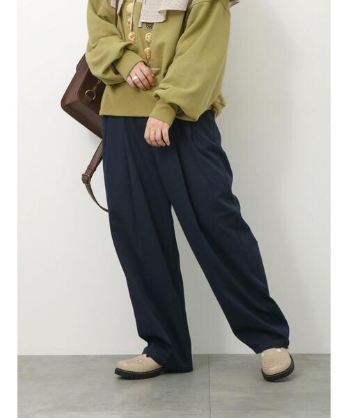 マニッシュな印象を与えてくれる上品なツータックパンツ。 きちんと感を持たせつつ、ゆとりのあるシルエットで穿き心地もノンストレスです。 センタープレスが縦ラインを強調し、すらりとした脚長効果が期待できるのも魅力的なポイント◎ ベーシックなデザインとカラーで着回し力も高く、ワードローブに備えておくと重宝しそうなアイテムです。 ※商品画像は、撮影環境やお客様のご利用のPC・スマートフォンのモニター環境などにより実物と色味に差異がある場合がございます。 【その他採寸】 F ウエスト:[後ゴム仕様]64cm