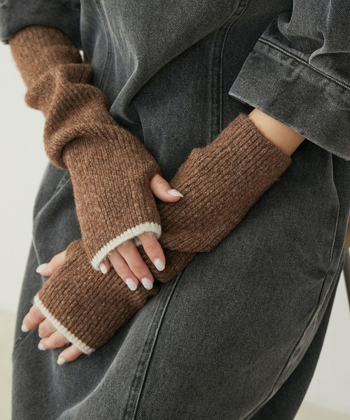 おしゃれな防寒が叶うアームウォーマー!【デザイン・シルエット】 人気のアームウォーマーが、今年はアップデートして登場です! 触り心地柔らかな風合いにこだわり、フィンガーレス仕様で手元も動きやすいのが嬉しいポイント。 今年は指穴を2つ開け、内側に折り返して半分にすることでショートアームウォーマーとしてもお使いいただけます。 そのままクシュっと使えるのはもちろん、半分の長さにすることでアウターを着た後に着用しづらい!アウターの中でもたつく!という点も解消されます。 【カラー】 ベーシックカラーからアクセントカラーまで全7色展開。 豊富なカラーで合わせたい色や差し色を幅広く選んでいただけます。 ※画像の商品はサンプルです。 実際の商品と仕様、加工、サイズが若干異なる場合がございます。