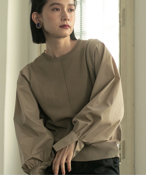 ------------------------------------------------- ▼ お気に入り登録 2500人突破!-------------------------------------------------着回し力◎!!袖フハクドッキングニットプルオーバー【デザイン】・ボディはニット素材で、袖部分をシャツ地で異素材ドッキングしたデザインプルオーバー。・シンプルなデザインながらも、一枚で華やかなに決まるトップス。・ニットと袖のフハク部分は同色染めをしており、異素材ながらもきれいな印象に。・通勤にも、デイリーにも、きれいめにきちんと着こなせるニットトップスです。【素材】・ニット部分は、混紡の糸を使用し、さらっとしたきれいな表面感のニット素材。・袖のフハク部分は、ハリのある綿/ポリエステル混素材を使い、お手入れしやすい素材。・マシンウォッシャブルでご自宅でのお洗濯も可能こちらの商品は主に秋に着用いただける商品です。モデル情報:身長168cm B76 W58 H86 着用サイズ:38(M)店舗へのお問い合わせ商品番号:637-17050●製品寸法:36(S):着丈55cm B88cm 袖丈59cm 肩幅30cm38(M):着丈57cm B92cm 袖丈60cm 肩幅32cm40(L):着丈59cm B96cm 袖丈61cm 肩幅34cm備考: