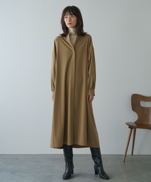 【2023AW】さらっとワンピースに、ボタンを開けてガウンとして、と1枚あれば着回しも楽しめるシャツワンピース。 前面はシンプルですが、背胴と袖口にギャザーを寄せて程よいボリューム感をプラスしたシルエットに仕上げました。 たっぷり生地を使用しつつも、柔らかい素材で軽やかな着用感です。 【コーディネート例】 ▶シンプルなブーツを合わせてすっきりとまとめて。 ▶ボタンを開けて、Tシャツ+パンツスタイルにガウンとして合わせて。 ▶スウェットやニットをプラスしてスカート風に。 ・透け感:なし ・裏地:なし ・生地の厚さ:やや薄め~普通 ・光沢:なし ・ポケット:なし <カラー表記> ・ブラック・・・Black ・グレー・・・C.Gray ・キャメル・・・Camel --------------------------- ▼お気に入り登録をおすすめしています ・商品のお気に入り登録:完売カラーの再入荷通知・在庫数1点の通知・セール通知を受け取れます。 ・ブランドのお気に入り登録:新作商品や再入荷などのブランドの情報を受け取れます。