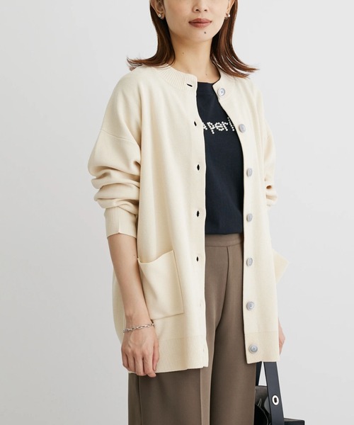 程よく長さのあるミドル丈が大人びた雰囲気を演出するカーディガン。露出控えめなモックネックで、あらゆるコーディネートに馴染みやすいです。ご自宅で簡単にお手入れできるマシンウォッシャブルがポイント◎パンツやスカートなどと合わせたスタイリングがおすすめです。透け感[無し] 裏地[無し] 伸縮性[やや有り] 光沢感[無し] 生地の厚さ[普通] 付属品[無し] ポケット[有り]前2つ●製品寸法:F:バスト56.5cm 着丈70cm 袖丈52cm 肩幅54cm 裾幅52cm備考: