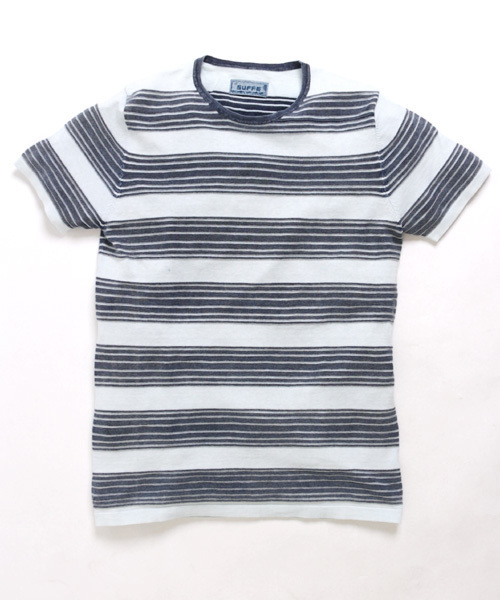 春夏の新作カットソーが入荷致しました。 個性的なボーダー柄が新鮮な1枚。 インディゴ糸を使用した雰囲気のあるボーダー柄は、 1枚での着用はもちろん、 インナー使いとしてもかなり使えそうなアイテムです。 やや細めのシルエットも嬉しいポイントです。 着込み事で独特の色落ちを表現してくれる Denimeオススメのセレクトアイテムです。 【SUFFE】 「洋服を着る人達の個性を最大限に引き出すアイテム展開。」 を基本コンセプトとしたカリフォルニア初のブランド。 ウエストコーストのライフスタイルをベースとし、 スポーツウェアのディテールを採用した、 着心地の良い日本産素材に拘ったアイテム展開が特徴です。 ブランド名の-SUFFE-の語源は、16世紀のインドにまで遡り、 -suffe-または-suff-と綴られインド洋沿岸に打ち寄せる荒波を指している。 「制限された」などの意味のある-suffer-は、 逆説で「やりたいことを出来る場所」という ポジティブなブランド由来となっています。 modelH175 着用サイズ:MEDIUM