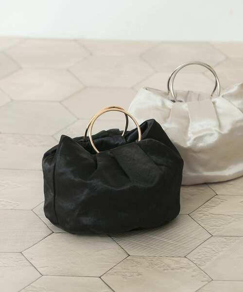 【光沢感のあるヴィンテージサテン生地を使用したハンドバッグ】 持ち手部分が真鍮のリングデザインとなっており、アクセサリー感覚でご使用いただけます。底が円形になっており、コンパクトながらも収納力は抜群。結婚式やパーティーのバッグにはもちろん、お出かけなどにもおすすめです。 【2023 Autumn/Winter】 総重量 : 約110g ※商品画像は、光の当たり具合やパソコンなどの閲覧環境により、実際の色味と異なって見える場合がございます。予めご了承ください。 ※商品の色味の目安は、商品単体の画像をご参照ください。 ▼お気に入り登録のおすすめ▼ お気に入り登録商品は、マイページにて現在の価格情報や在庫状況の確認が可能です。 お買い物リストの管理に是非ご利用ください。 Free
