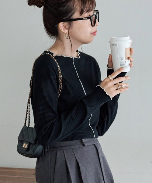 インナーやレイヤードにも重宝するロングスリーブ。 前後2WAY仕様で、雰囲気を変えた着こなしが叶うロングスリーブ。程よくコンパクトなサイズ感ながら、伸縮性の良いリブ編みでデイリーユースに最適。首元や裾、袖口に施した配色のメロー始末が、アクセントを添えています。一枚着はもちろん、インナーとしても使い勝手が良く幅広いアレンジが可能なアイテムです♪ *********************** 洗濯方法:家庭洗濯可 裏地:なし 透け感:なし(アイボリー、ライトグレーのみややあり) 伸縮性:あり 光沢感:なし 生地の厚さ:やや薄い *********************** 【POINT】 ・表情の変化を楽しめる前後2WAY仕様 ・女性らしいコンパクトなサイズ感 ・アクセントをプラスするメロー仕立て 【COORDINATE】 一枚着はもちろん、キャミワンピースやサロペットのインナーにもおすすめ。すっきりとしたシルエットなので、コーディネートのアレンジが広がります。 ※着用、お取り扱いは商品についておりますアテンションタグを必ずご確認ください。 ※ご覧のモニター環境や撮影環境により実際の商品と多少色味が異なって見える場合がございます。 【お気に入り登録がオススメ!】 ●商品のお気に入り登録 「在庫残りわずか」の通知や、「完売カラーの再入荷」、「セール」の通知を受けることができます。 ●ブランドのお気に入り登録 新商品や再入荷等、ブランドのお得な情報を受け取る事が出来ます。