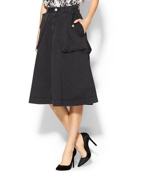 100% Cotton. Machine wash cold. Imported. Marc by Marc Jacobs Circle Skirt 2 large front pockets, 1 back pocket Zip fly with button closure Midi skirt styling Full skirt silhouette Imported Model is 5'9", wearing a size 2