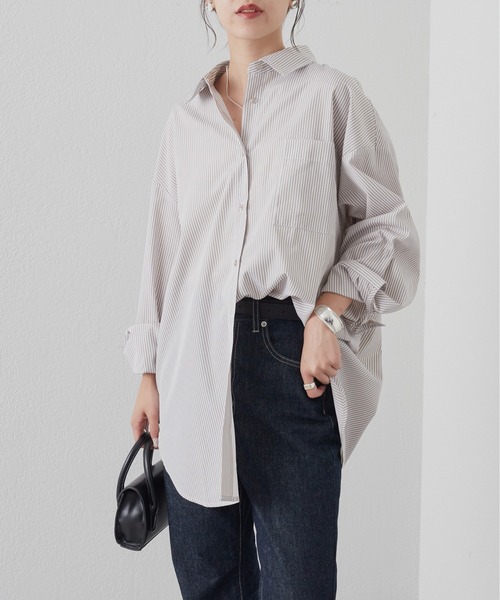 【秋らしいカラー展開のオーバーサイズストライプシャツ】 きれいめにもカジュアルにも着こなせる、秋にぴったりなストライプ柄シャツ。 ややゆったりとしたサイズ感は1枚で決まるほどの存在感。 【商品ポイント】 ・柔らかな肌触りと上品なハリを兼ね備えた1枚 ・1枚あれば着回し力抜群のストライプシャツ ・ロングシーズン使える素材感 ・ゆったりしたビッグシルエットで、羽織りにも1枚着でも◎ 【コーディネート】 定番デニムやカーゴボトムと合わせてカジュアルスタイルにきちんと感をプラス。 スリットスカートやマーメイドスカートとの相性も抜群! インナーにロゴTやキャミソール、キャミワンピースを合わせた羽織スタイルにも◎ ---------------------------------------------------- ■商品特徴 洗濯方法:手洗い可 裏地:なし 透け感:なし 伸縮性:なし 光沢感:なし 生地の厚さ:普通 ---------------------------------------------------- ■素材 ポリエステル100% ---------------------------------------------------- ※着用、お取り扱いの際は、商品についている品質表示とアテンションタグを必ずご確認下さい。 ※商品タグに記載されている商品名がWEBでの表記名と異なる場合があります。 ※実際の商品と仕様、加工、サイズが若干異なる場合がございます。 ※照明の関係により、実際よりもやや明るく見える場合がございます。 またパソコンなどの環境により、若干製品と画像のカラーが異なる場合もございます。予めご了承くださいませ。 【お気に入り登録】してお得な情報をCHECK!! ・「商品のお気に入り登録」で再入荷通知や、ラストの通知、セール通知も受け取ることができます。 ・「ブランドのお気に入り登録」で新商品や再入荷など、お得な情報を受け取ることが