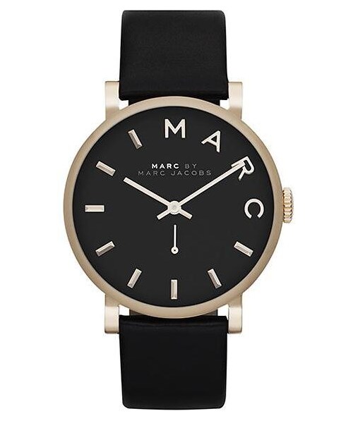 Marc by Marc Jacobs Baker Three hand watch Adjustable leather strap Case diameter: 36.5mm Gold-tone stainless steel Imported Imported.
