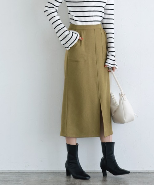 着回しできてシーズンムード漂う“ウールライクスリットロングスカート” ウールが入っているかのような柔らかな肌触りの素材。薄手で程良くしっかり感もあり上品見えしてくれます。 フロントにスリットの入ったロングスカート。抜け感があり、足さばきもしやすいデザインです。大きなポケットが程良いアクセントに◎シンプルなIラインシルエットがすっきり見えし、きれいめからカジュアルまで幅広く着回せるアイテムです。 透け感(淡色):なし 透け感(濃色):なし 伸縮性:なし 裏地:なし ポケット:あり ファスナー:あり ※商品画像は着用イメージです。光や角度により、実物と色味が異なる場合がございます。 また表示のサイズ感も実物とは若干異なる場合もございますので、予めご了承ください。 【ブランド】 marvelous by Pierrot(マーベラスバイピエロ) 【お買い物を楽しむための方法】 **商品のお気に入り登録** カートボタン横の♡をクリック! 気になるアイテムが完売しても再入荷のお知らせ通知や、在庫ラスト1点の通知、セールの通知が届きます。 **ブランドのお気に入り登録** ブランドトップページの「♡お気に入りブランドに追加」をクリック! 新商品や再入荷など、クーポン配布などのお得な情報を受け取ることができます。