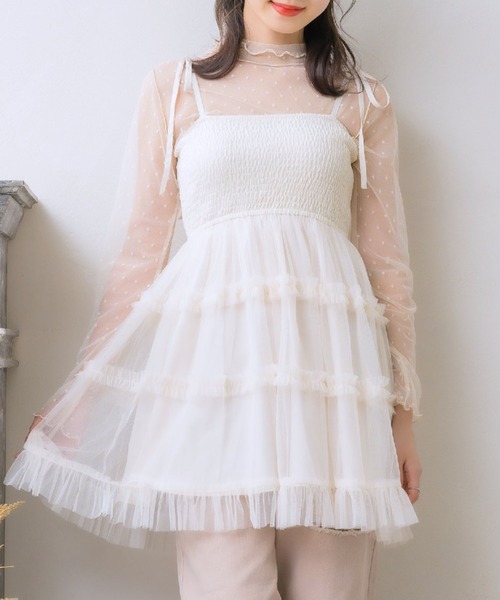 <ガーリーコーデをとことん楽しめる!> ▼デザイン チュール素材のガーリーなフリルチュニックが登場! 肩リボンで丈感の調節が可能です〇 ふわっと広がるシルエットが女の子らしくて、ガーリーコーデにおすすめのアイテムです。 中国でトレンドの純欲コーデにもなるので、挑戦したい方はぜひこのアイテムをGetしてみて下さい♪ ▼コーディネート ガーリーなブラウス合わせや、ロゴT合わせも◎ 中にシアーインナーを合わせると、韓国アイドルの衣装のような見え感に! ------------------------------ 生地感:薄手 伸縮性:ある 透け感:ある(チュール部分) 裏地:ある ------------------------------ ▼ブランド紹介 ems excite (エムズエキサイト) “more fun more cute” 今をもっと楽しく もっと可愛くいたい女の子に向けた girly cuteなブランド #チュール #チュールチュニック #チュニック #ガーリーアイテム #純欲コーデ ▼注意事項 ※撮影環境やモニター環境によって実際の商品とお色味が多少異なってみえる場合がございます。 品番:EF357022B001 / 品名:フリルチュールキャミチュニック
