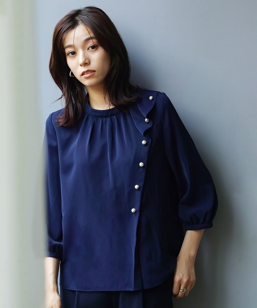 ジャケットINにも単品でもコーデを格上げしてくれる エレガントなサイドパールブラウスがWHITE JOOLAから誕生です。 とろんとしたとろみデシン生地を使用したとってもクチュールな1着。 お袖は二の腕をカバーできるフワリとした7分丈のパフスリーブに仕立てました♪ スペシャルプライスで登場です! 【手洗いできる&防シワ加工】 WEB限定!サイドパール調デザイン・ソフトデシンブラウス ■ WHITE JOOLA オリジナル ■ とろんとした心地良い肌触りのとろみデシン生地と、 大粒のパールをあしらったクチュールなブラウスです。 手洗い可能でおうち洗い可能なのもうれしいポイントです♪ ネックは控えめなスタンドカラー。 首元には切り替えに沿ってギャザーをあしらい華やかに。 バックネックはパールを1粒あしらった涙開きです。 お袖はフリルをあしらったふわりとした7分丈のパフスリーブです。 春・秋・冬とご着用いただけます。 <<お色展開 >> オフホワイト (爽やかなオフホワイト) ベージュ (ほんのりピンクがかった上品なベージュ) サックス (落着きある大人のサックス) ネイビー(パールが映えるエレガントなネイビー) << サイズ選びについて >> こちらの商品は、 体もラインを拾いすぎないシルエットです。 目安 普段S(7号)サイズの方はSサイズ 普段M(9号)サイズの方はMサイズ 普段L(11号)サイズの方はLサイズ =========================== 生地の厚さ:★★☆☆☆ 透け感:ライトカラーはややあり 裏地:なし 伸縮性:なし 光沢感:なし 生地感 :とろんとした落ち感のある生地 お手入れ方法:手洗い可 推奨着用シーズン:春・秋・冬 =========================== 【WhiteCollection】 大人の休日にマストな、 ヒトワザ効いたトレンドアイテムを提案。 デザインとプライスのバランスが魅力です。 【商品のお気に入り登録】 完売カラーの再入荷通知やラスト1点の通知、 プライスダウンの通知も受け取ることができます。 【ブランドのお気に入り登録】 新商品や再入荷など、 ブランドの情報をいち早くお知らせします。 ぜひご登録ください◎ ※室外の光や照明の当たり具合で、実際の商品の色味とカラー別画像の色味に若干の違いが発生する場合がございます。