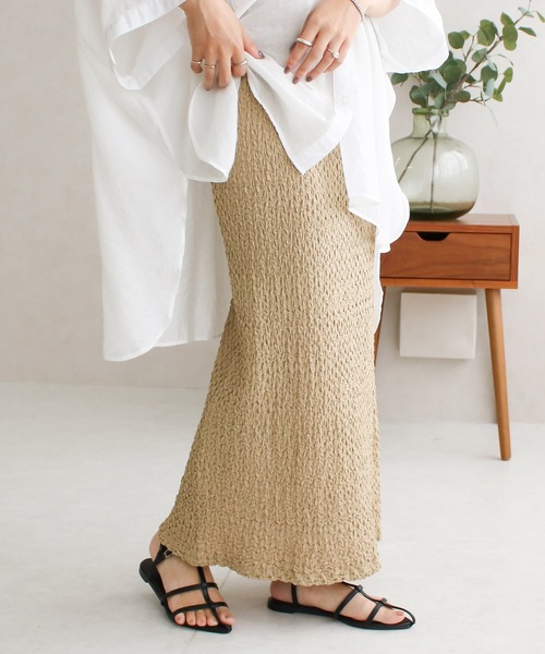 バックスリットで大人っぽい品のあるロングスカートが入荷しました。 ・穿くだけで上品な存在感。 縦長を強調するロング丈のストレートでレッグラインを拾いにくく、脚長効果も。 程良く入ったバックスリットが動きやすく、足捌きのよい仕上がりに。 ストレッチ性が高く快適に着こなせます。 総ウエストゴムなので着脱も簡単で、リラクシーな履き心地が魅力です。 シンプルながらもキレイ見えするデザインなのでオフィスやお出かけにもおすすめです。 ・クシュっとした表面感がニュアンス漂う膨れジャガード素材。 立体感のある独特の凹凸が上品さを演出。 ストレッチ性のあるさらっとしたカットソー素材で着心地よく着ていただけます。 ・STYLING。 カットソーやロングTシャツと合わせてカジュアルダウンしたり、 ブラウスをインしてベストと組んできれいめコーデも。 ボリュームの少ない落ち感のあるシルエットな為、 オーバーサイズのトップスやBIGシャツともバランスが取りやすいアイテムです。 1937-92とのセットアップも可能です。 ------------ ■ SocialGIRL 慌ただしく過ぎていく日常と非日常の中でも 常に自分ライクなスタイルを見出し続ける 大人の女性に向けたマルチで社交的なベーシックウェア。 ■ CONCEPT アウターを中心としたアイテムラインナップを、豊富なサイズ展開&リーズナブルな価格で展開中。 ほかでは手に入らないベストなプライスで、ひとりでも多くのお客様にジャストなサイズ選びを! SocialGIRLでは、多くの品番でイレギュラーサイズを別注し、大きいサイズ&小さいサイズさんをサポートしています! ------------ ※ご覧いただいている環境によっては、実際のカラーと異なって見える場合がございます。あらかじめご了承くださいませ。