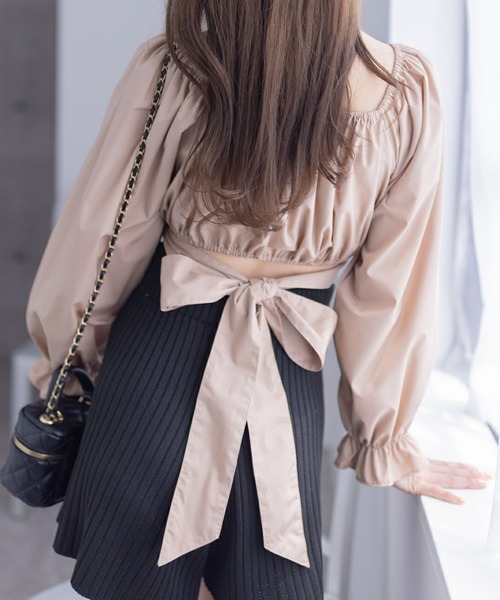 スタイルアップ間違いなし!クロスバックリボンブラウス 【デザイン】 トレンドのショート丈ブラウスでサイズ感もコンパクトなので、どんなボトムス合わせでもきれいに見せてくれます。 後ろでリボンに括っていただけるデザインなので、前後どちらから見ても可愛いです♪ 【素材感】 肌触りが良く着心地抜群なポリエステル素材 伸縮性:なし / 透け感:オフホワイト、サックスブルーのみ若干あり / 裏地:あり 手洗いによる洗濯可 / ドライ・ウェットクリーニング可 【コーディネート】 ミニスカートなどにショートブーツやロングブーツ合わせで、韓国風コーデに仕上がります! 【※お取り扱い上のご注意】 1:モニター環境等により実際の商品と多少色味が異なって表示される場合がございます。予めご了承下さい。 2:屋外で撮影された商品は、天候により多少実際のカラーと異なる場合があります。商品のカラーはトルソー(マネキン)の商品画像をご参照ください。 3:濃い色の商品は、お洗濯や摩擦等による移染にご注意ください。 4:末永くご愛用頂く為に、アテンションタグ・洗濯ネームを必ずご確認の上、着用又はお取り扱い下さい。 5:生産時期により、色、サイズ、デザイン、素材の質感が多少が異なる場合がございます。あらかじめ御了承下さいませ。
