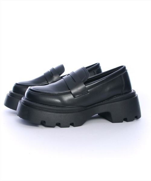 トレンド感のあるレザー厚底ローファー。存在感が抜群で、スタイルアップしてくれます♪足元にプラスするだけでコーデを格上げしてくれます! *生産の工程上、アッパーやソールの接合部に接着剤の付着やはみだしが見られる場合がございますが、特性としてご了承くださいませ。