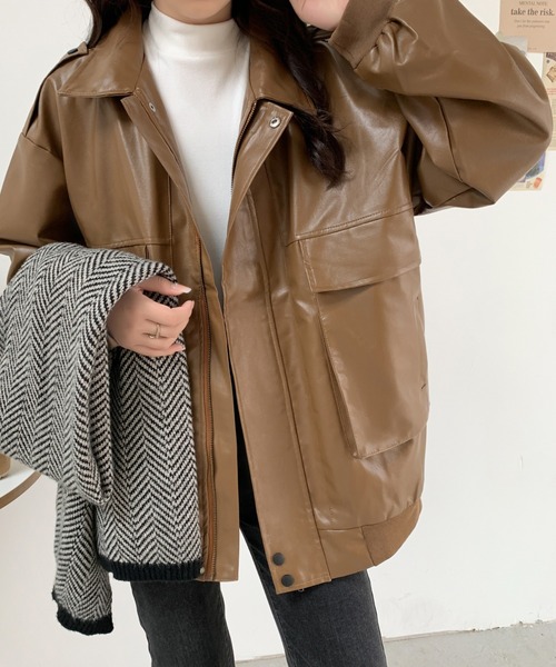 今年のマストバイアウター! お洒落さんはみんな即買いのフェイクレザーブルゾンの登場! 絶妙にヴィンテージライクな生地感が程よくレトロに見せてくれ お洒落映えのアイテムです。 ゆとりのあるメンズライクなシルエットだからストレスフリーな着心地。 ビッグなポケットも可愛さの1つ。 重厚感漂う上品なフェイクレザーで シーズンスタイルをアップデートできる万能アウターです。 ■coordinate カジュアルにデニムパンツや、トレンドのショートパンツを合わせたコーデがおすすめ! フェミニンなワンピースやスカートと合わせて甘辛MIXに着こなすのも◎ インナー次第で秋冬から春先までロングシーズン着用いただけます。 ....................... 生地の厚さ:厚手 裏地:あり ポケット:あり ファスナー:あり 洗濯方法:※詳しいお手入れ方法は商品タグをご参照ください …………………… ▼お気に入り登録のおすすめ 【気になるアイテムを登録】 ハートをクリックしてお気に入りに登録すると 完売カラーの再入荷やラスト1点の通知、セールの通知を受けとることができます。 【ブランドを登録】 新商品や再入荷、セール通知など、いち早くブランドの情報を受けとることができます。是非ご利用頂き、お買い物をお楽しみ下さい。 ▼商品について ・サイト上のカラー名と、お届け商品に記載されているカラー名が異なる場合がございます。 ・商品の色味は、撮影場所や光のあたり具合などにより色味が違って見える場合がございます 。また、お客様のお使いのPCのモニター環境などにより色味が違って見える場合がございます。 予めご了承の上ご注文下さい。