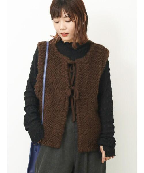 くるくるとしたループニットで愛らしさたっぷりに仕上げたニットベスト。 フロントで結ぶダブルリボンも視線を集めるアクセントをプラス。 後ろ身頃は編み柄を変え、すっきり見えするデザインに仕上げました。 コーディネートに取り入れるだけでも、ほっこりとした可愛らしさを演出してくれるアイテムです。 ※商品画像は、撮影環境やお客様のご利用のPC・スマートフォンのモニター環境などにより実物と色味に差異がある場合がございます。