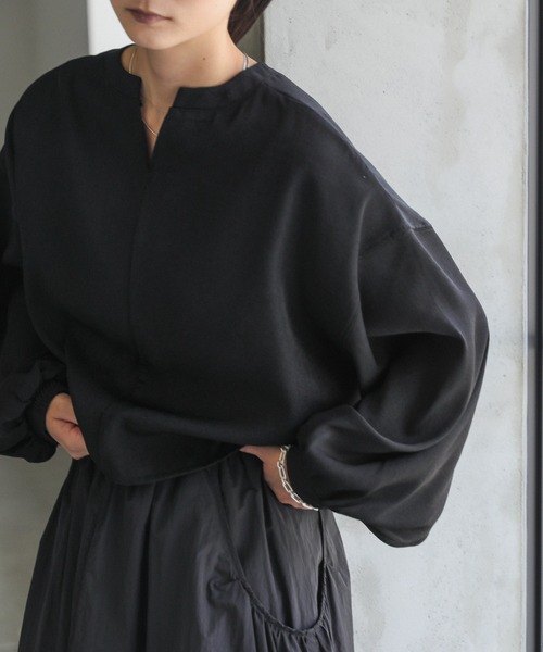 -point- & -styling- 立体的なフォルムが魅力的なボリュームスリーブブラウス。 袖口にたっぷりとギャザーをよせてふわっと柔らかな膨らみを持たせた1枚。 ややマットな質感で甘くなりすぎず、幅広いスタイリングにマッチします。 袖にボリュームを付けた分、首周りはすっきりと見えるデザインに◎ 前後2wayで着用可能です。 スカートやスラックスなどキレイめなアイテムで合わせれば オフィスやオケージョンシーンでも活躍します。 デニム合わせでカジュアルダウンさせたスタイリングもおすすめです。 ショート丈ボリューム袖トップス ---------------------------- 素材 ポリエステル100% ---------------------------- 伸縮性 なし 裏地 なし ---------------------------- ※モニター・環境等により実際の商品と多少色味が異なって表示される場合がございます。 予めご了承をお願いいたします。 ======================= ■袋梱包の為、染料による特有の匂いが抜けきれず、匂いがする場合がございますが不良品にはあたりません。 上記注意点での返品、交換はお断りします。ご了承の上お買い求めくださいませ。 ■本製品は生産過程におきまして色味、サイズ感等若干の誤差が出る場合がございます。予めご了承くださいませ。 ======================= 【お買いものをお楽しみいただく為に!】 ▼商品のお気に入り登録 完売カラーの再入荷通知や、ラスト1点の通知、セールの通知も受け取ることができます。 ▼ブランドのお気に入り登録 新商品や再入荷など、いち早くブランドのお得な情報を受け取ることができます!