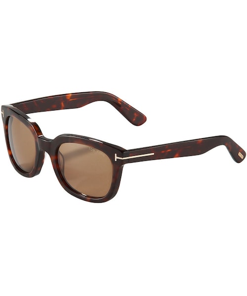 Brown havana plastic frames. Tonal rounded lenses with Tom Ford logo. Golden insets at temple. Imported.