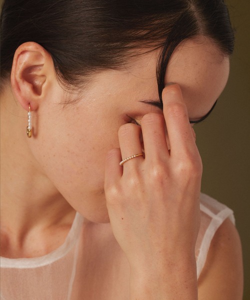 小粒なパールが半周連なった、定番デザインのリング。細目のシルエットで手元を華奢に見せてくれる優れものです。お仕事やキレイめ場面にひとつあると重宝する、間違いないアイテム◎<サージカルステンレスの特徴>・医療器具にも使用されるステンレス・汗、水に強く、サビにくい・金属アレルギー対応サージカルステンレスは、サージカル=医療用の、 ステンレススティール=錆びない鉄、 という意味で作られた造語で、身体に影響の少ない安全な合金です。 そのため、金属アレルギーの方にも安心で、腐食や熱などにも強いため、長く着用していても老朽化しにくいというメリットがあります。※サージカルステンレスはアレルギーが起きにくい素材ではありますが、アレルギーの原因はさまざまです。すべての方にアレルギーが起きないことをお約束するものではありません。またアレルギー反応が出た場合は使用をお控え頂くようにお願いいたします。※錆に強く、変色しづらい特徴がございますが、経年の劣化は考えられますため、永久に製品状態を保証するものではございません。使用状況・方法などによって劣化の速度は異なります。予めご了承ください。<サイズ>9号 直径:15.6mm11号 直径:16.3mm<CENEとは>金属アレルギーに悩む女性向けブランド- 「金属アレルギーでも輝きは捨てない」 CENEは、アクセサリーつけると“痒くなる”という金属アレルギーの方や”お風呂も温泉も付けっぱなし”で入りたい!!という女子のためのアクセサリーブランドです。