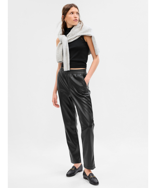 ポリエステル100%生地使用、柔らかなはき心地のエコレザーパンツ 滑らかな質感のフェイクレザー ウエストゴム、フェイクフライ フロントスラントポケット 裾スリット※商品タグに記載の価格とサイト上の販売価格が異なる事があります。 【Gap ギャップ】1969年にアメリカ・サンフランシスコで創業以来、世界的なカジュアルファッションブランドとして、常にモダンなアメリカンカジュアルを提案し続けています。