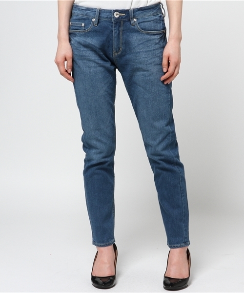 ホワイト、ヒッコリーストライプ、インディゴデニムの3素材を使用しているボーイフレンドデニム。ホワイトデニム(11.5OZ)はあえて硬い素材を使用しています。こちらは履き続けてもらうと柔らかくなり足に馴染んできます。トレンドのヒッコリー素材のストレッチは珍しく大変履き易い素材になります。こちらの素材も履き続けてもらうと足に馴染んできます。インディゴデニムは10OZを使用していますのでこちらもオールシーズン着用できるアイテムになります。ステッチやポケットなどちょっとしたポイントをこだわっているボーイフレンドパンツになります。