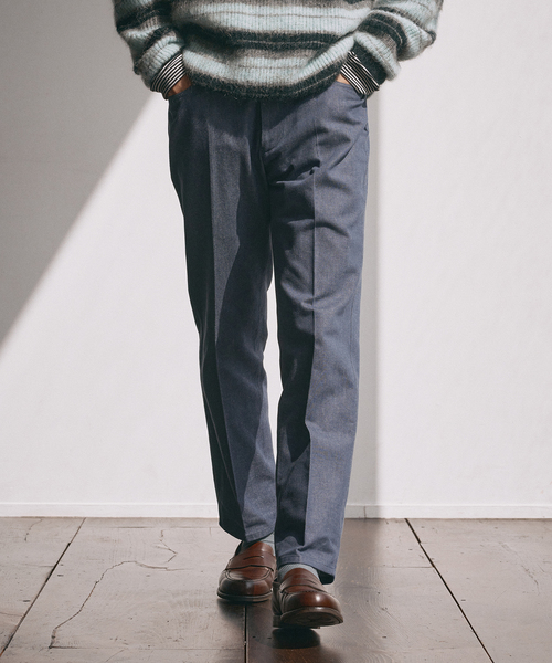 一見するとカジュアルなデニムに見えるが仕立ては、テーラードパンツに見られる腰裏仕様や持ち出し、股グリなど丁寧にパイピング仕様にするなど表に触れない部分なども綺麗に仕上げています。 パイプドステムという名前の、筒のようにストンと落ちるシルエットのデニムで、股上はやや浅め、腰回りもタイトなシルエットでウエストからピップにかけてストンとした細めのストレートシルエット。センタープレスをいれてスラックスとして履いて頂くのもおすすめです。 素材は10ozの反応デニムになり先染による色落ちしにくいデニム生地を採用しています。 ********************** 透け感:なし 裏地:なし 伸縮性:なし 光沢感:なし 生地の厚さ:普通 ********************** 【スタッフ着用コメント】 《スタッフA》 身長:178cm/体重:62kg/普段サイズ:L/着用サイズ:48 サイズ感:細身ではありますが締め付けのないサイズ感。ウエスト周りは余裕があります 素材感:適度なハリでしなやかさも感じるデニム素材 着心地:スッキリしたシルエットなので、もたつきを感じないので履きやすいです ********************** 【ご注意】 ※照明の関係により、実際よりも色味が違って見える場合があります。 またパソコン・スマートフォンなどの環境により、若干製品と画像のカラーが異なる場合もございます。 ※商品の色味は、商品アップ画像をご参照ください。 本体:手洗い可能