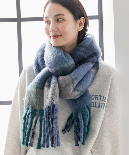 BIGサイズのブークレーマフラー。チェック柄がスタイリングのアクセントになる1枚です。ふんわりとした柔らかな質感で、首元をやさしく包み込んでくれます。