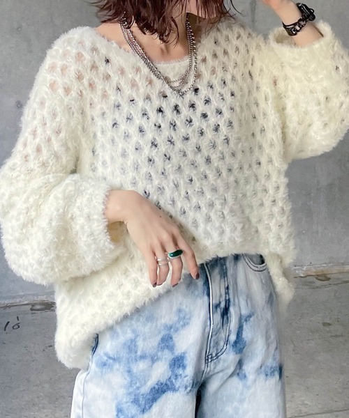 大き目のメッシュの編地がポイントのプルオーバー 毛足の長い糸を使用しざっくりとメッシュ編みで仕上げたプルオーバーは、 インナーにタンクトップやキャミソールを合わせると、早めの時期からの装いに秋っぽさがプラスできます。もちろんロンT合わせも◎ 程よいオーバーサイズですが、大き目のメッシュ編みなので重たくならずに軽やかな雰囲気で着ていただけます。 〈注意事項〉 ・サンプルにて撮影をしておりますので、実際の商品とは素材や仕様・加工・サイズ等が若干異なる場合がございます。 ・モニター・環境等により実際の商品と色味が多少異なって表示される場合がございます。予めご了承をお願いいたします。 ・撮影環境により、光の当たり具合で色味が違って見える場合があります。あらかじめご了承下さい。 ・こちらのアイテムにインナーはついておりません。 ▼気になるアイテムは《お気に入り登録》がおすすめです! 完売カラーの再入荷情報、セール情報、ラスト1点の通知を受け取ることができます! ▼《ブランドのお気に入り登録》で新商品や再入荷などのお得な情報をいち早くお知らせします。