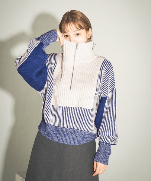 【“着映え”ポイントが詰まった主役級ハーフジップニット】首元のレイヤード&切り替えデザインで存在感を高めたハーフジップニット。ネックウォーマーを重ねたような首元、そしてパーツ毎に編地とカラーを切り替えるなど“着映え”ポイントが詰まった1着です。カジュアルコーデと相性の良いIVO×BLUEとGRAY×ORG、そしてカラーボトムにも合わせやすいBLACKの3色をご用意。カラーによって雰囲気がガラッと異なるのも魅力のひとつです。COORDINATE存在感があるので、スラックスなどすっきりめのボトムを合わせるのがおすすめ。アウターインにも映えるデザインなので秋~冬まで長くお楽しみいただけます。【2023 Autumn/Winter】※商品画像は、光の当たり具合やパソコンなどの閲覧環境により、実際の色味と異なって見える場合がございます。予めご了承ください。※商品の色味の目安は、商品単体の画像をご参照ください。▼お気に入り登録のおすすめ▼お気に入り登録商品は、マイページにて現在の価格情報や在庫状況の確認が可能です。 お買い物リストの管理に是非ご利用下さい。