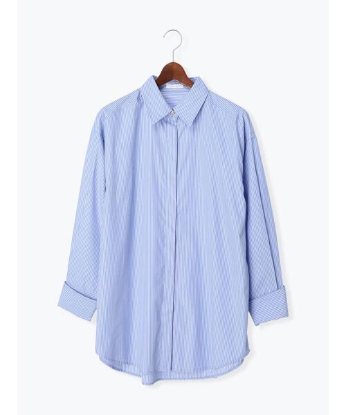 ハリのあるブロードで仕立てたチュニックシャツ。メタルボタンのワンポイントが映える比翼の前立ても上品な印象を演出します。折り返しデザインのカフもアクセントをプラス。ゆったりと着られるチュニック丈で、リラックス感のある大人の着こなしが楽しめるアイテムです。※商品画像は、撮影環境やお客様のご利用のPC・スマートフォンのモニター環境などにより実物と色味に差異がある場合がございます。【その他採寸】F 着丈:[前]80cm[後]85cm 袖丈:50-60cm