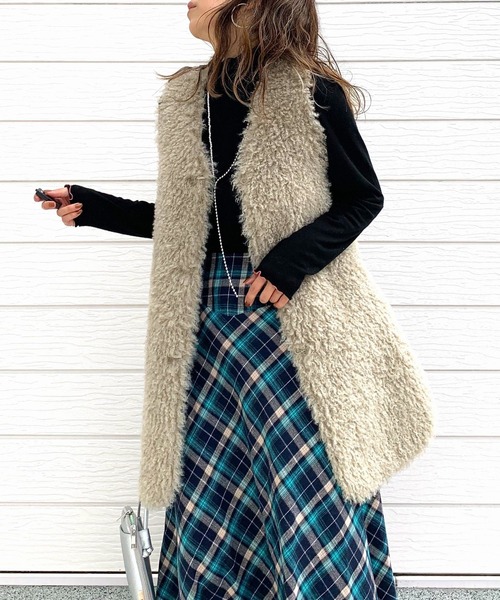 リバーシブルで使えるベストです。もこもこ感がかわいいプードルフェイクファーとすっきりめな印象のフェイクスエードを2wayで使い分けていただくことができます。程よくヒップやウエスト周りをカバーする丈感なので安心感も抜群。フロントはホックで留められるようになっています。ふんわり柔らかな風合いとコーデに馴染みやすい上品な2色で揃えました。合わせるインナーによっても雰囲気を変えらるので様々なコーディネートに活躍するアイテムです。《インフォメーション》◆商品のお気に入り登録完売していても再入荷時に再入荷通知を受け取ることができますので、是非ご登録ください。◆ブランドのお気に入り登録新商品や再入荷などの情報を受け取ることができますので、是非ご登録ください。