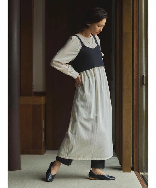 ニットジレとワンピースの2点セットアイテム。 ワンピースはギャザーの生み出すゆったりシルエットでリラックスして着用することができます。裾のサイドに施したスリットが、足元に軽やかなヌケ感もプラス。 セットのニットビスチェを合わせることで、メリハリのあるレイヤードコーデを手軽に楽しむことができます。 それぞれ単品でも着回し可能で、スタイリングの幅も広がります◎ 透け感[やや有り]※ニットジレは[無し] 裏地[無し] 伸縮性[無し]※ニットジレは[有り] 光沢感[無し] 生地の厚さ[薄手]※ニットジレは[普通] 付属品[有り]2セット【ニットジレ+ワンピース】 ポケット[無し] ■Bon labre(ボンラブレ) 好感度のあるコンテンポラリースタイルを提案 ●製品寸法: F:バストワンピ51/ジレ42cm 着丈ワンピ125/ジレ37cm 袖丈ワンピ59.5cm 肩幅ワンピ37/ジレ30cm ウエストワンピ100cm ヒップワンピ140cm 裾幅ジレ40cm 備考: