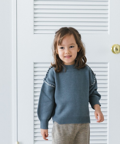 配色のハンドステッチがナチュラルな雰囲気のニットプルオーバーです。 裾にはスリットが入っているので、ミドル丈でも動きやすさもバッチリです。 【スタイリング】 スカートでもパンツでも合わせやすいシンプルなデザインなので、様々なコーディネートを楽しめるニット。 同じデザインのママサイズもあるので、秋冬のお揃いコーデにもピッタリです。 生産時期により色味が若干異なる場合がございます。ご了承ください。 ※こちらの商品は他の商品とサイズ表記が異なります。 (XS:85cm相当、S:105cm相当、M:125cm相当、L:145cm相当) 【ポケット】 なし 【伸縮性】 あり 【透け感】 なし 【クリーニング】 手洗い可 【裏地】 なし