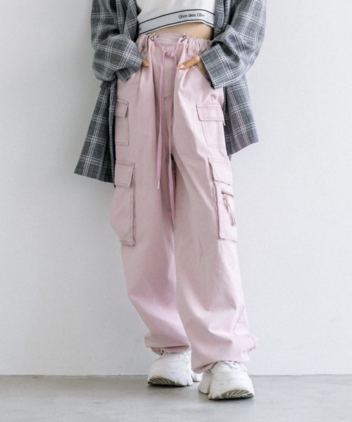 ポケットのボリュームが可愛いカーゴパンツ ■デザイン ・ポケットが沢山ついたデザインが可愛いカーゴパンツ。 ・デニムのケミカル加工がお洒落なデザイン。 ・生地は柔らかいデニムで履き心地も良いです。 ・ウエストと裾はドローコードで絞ってシルエットの変化を楽しめます。 ・ウエストの紐は垂らして着るのがおすすめ。 ・裾を絞らずにゆるっと着用しても◎ ・ストリートなアイテムですが、ガーリーライクにも着こなせるピンクもご用意しました。 ■カラー ・デニム/ピンク/ディープピンク/ブラックの4色展開 ■スタイリング ・クロップド丈のトップスで合わせると今っぽいバランスに。 ・ブラトップにカーディガンやテーラードジャケットを羽織ったスタイリングも◎ ・厚底スニーカーなどカジュアルな足元がおすすめ。 ■POINT 秋服、秋コーデ、夏服、夏コーデ、カーゴパンツ、デニムパンツ、ワークパンツ、ローウエスト、韓国ファッション、韓国コーデ、スポーティ、低身長 ------------------------------------ 裏地:なし 光沢感:なし 透け感:なし 伸縮性:なし 手洗い: 可能 タンブラー乾燥: 不可 アイロン: 110℃まで ------------------------------------- model:166㎝ ※着用、お取り扱いの際は、商品についている品質表示とアテンションタグを必ずご確認下さい。 ※ご覧のモニター環境や撮影環境により実際の商品と多少色味が異なって見える場合がございます。 ご理解の程よろしくお願いいたします。 【デニム】 デニム製品の特性上、着用や洗濯によって「色落ち」「色移り」が生じます。 デニム製品の特性をご承知の上、色合いの変化をお楽しみください。 ・ご着用中の摩擦等により移染します。白・淡色系の衣服、ハンドバッグ、靴、シート等は特にご注意ください。 ・デニム製品が雨水や汗で濡れると、より色移りしやすくなります。 ・洗濯により洗液がにごり移染しますので、他のものと一緒にしないで単独でお洗いください。 ・洗濯後濡れた状態で放置されますと色移りしやすくなります。 ・色移りしやすいため、下着やインナーには暗いカラーのものを着用いただくことをお勧めいたします。 ■お気に入り登録のおすすめ 【気になるアイテムを登録】 ハートをクリックしてお気に入りに登録すると 完売カラーの再入荷やラスト1点の通知、セールの通知を受けとることができます。 【ブランドを登録】 新商品や再入荷、セール通知など、いち早くブランドの情報を受けとることができます。
