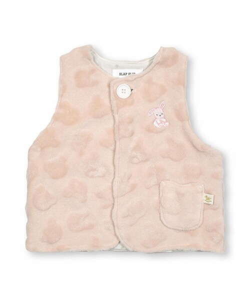 クマとウサギのシルエットが型押しされているポコポコした素材感のボアが印象的なベビーベスト。 カラーごとに異なる胸元の刺しゅうが、アクセントになっています。 ウサギ、クマ、恐竜・・・どの子もあどけない表情でとってもキュート♪ お気に入りのモチーフを選んでね! ずっと触っていたい!肌触りのいいボアを使用しているのでベビーもママもニッコリ。 ベストタイプの羽織は、手の動きを邪魔しないので、お出かけにぴったり! 秋から冬まで長く活用できるのもうれしいポイント。 体温調節が苦手なベビーの秋冬のお散歩などのデイリー使いに最適なアイテム◎ かわいらしいピンク、さわやかなブルー、周りと差がつくオレンジがかったベージュの3色展開です。 ※左ポケットあり ※柄の出方は生地の裁断により一点一点異なります。 ※モデル画像はライトを当てて撮影しているため、実際の商品カラーと差異がございます。 2023念秋冬男の子・女の子アイテム。 【SLAP SLIP(スラップ スリップ)】 ~子どもの欲しいをカタチに~ ヨーロッパのこどものように 子どもらしい今しか着れないナチュラルなかわいさを提案 どこか上品で清楚感漂うフレンチカジュアルは いつものコーディネートをさりげなく格上げ