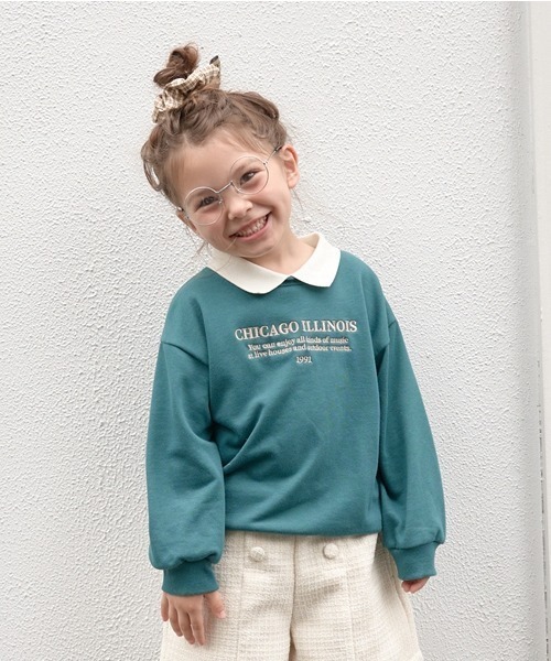 フロントの刺しゅうと衿付きデザインがレトロかわいい雰囲気を演出してくれるスウェットです。1枚着るだけで秋冬らしいプレッピーコーデが完成します。衿部分はストレッチ性のある生地を使用しているので、窮屈感なく着やすいアイテムです。[表コットン毛玉バイバイ]表面はコットンのみを使用して毛玉になりにくいT/C裏毛を使用。※掲載画像の商品の色味は、光の照射や角度により実物と色味が異なる場合がございます。また表示のサイズ感と実物は若干異なる場合もございますので、予めご了承ください。【透け感】透けない【生地の厚さ】普通【伸縮性】あり【裏地】なし【ポケット】なし【アジャスター】なし春 秋 冬 通園 通学 普段使い お出かけ イベント クリスマス お正月 帰省 きちんと感