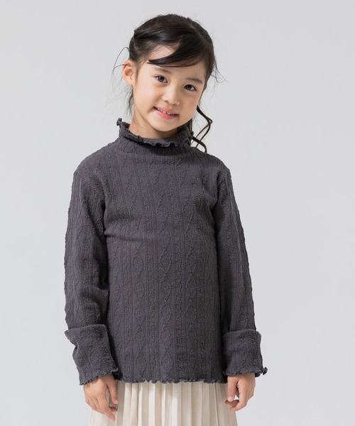 選べるカラーバリエーションが魅力!アラン編み風ハイネックカットソー。ストレッチの効いた生地に袖口はかわいらしいメロー仕立て! デイリーコーデはもちろんおしゃれ着との相性も抜群!