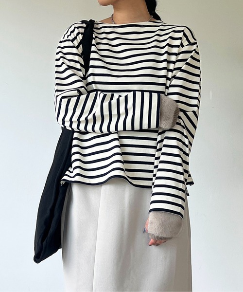 ■2023 AUTUMN & WINTER ITEM■ 抜け感のある上品なリラックスムードを演出 商品ポイント ・フレンチボーダーTシャツをモチーフに、ゆったりサイズで製作された1枚 ・首ぐりをゆるりとあけた女性らしいボートネックと太めの袖口がこなれ感がありトレンディ―な1枚 ・今期のトレンドでもあるビッグシルエットのアイテム おすすめコーディネート ハイウエストパンツにタックインした着こなしもおすすめ デニムやIラインのニットスカート、ハーフパンツでのコーデがぴったり! イージーパンツやジョガーパンツとも相性良し 素材 綿100% 洗濯方法:洗濯機洗い可能 透け感:なし 裏地:なし 伸縮性:あり 生地の厚さ:普通 光沢:なし ポケット:なし 【スタッフ着用コメント】 《RINO》 身長:148cm/着用サイズ:F 体型:普通/骨格:ストレート/パーソナルカラー :ブルベ冬 ゆったりめパンツやスカートに合わせたいボーダーアイテム♡ 忙しい朝にぴったりの簡単オシャレがつくれちゃう 《ゆうき》 身長:153cm/着用サイズ:F 体型:ぽっちゃり/骨格:ストレート/パーソナルカラー :イエベ春 ゆったりとしたデザインなのでぽっちゃりの私でも着られました。 ボーダーは一枚あると便利なので重宝してます。 《YUI》 身長:149cm/着用サイズ:F 体型:ぽっちゃり/骨格:ウェーブ/パーソナルカラー :イエベ春 ゆったりしたサイズ感なので1枚で着たいボーダートップスです。 カジュアルなアイテムなのでキレイめボトムスと合わせたいです。 骨格タイプ ストレート:全体的に立体型で筋肉質。ひざ下はすらっと細め。ボディラインにメリハリがある。 ウェーブ:上半身が薄く、華奢。緩やかな曲線のボディライン。下半身に重心があり女性らしい体型。 ナチュラル:筋肉や脂肪があまり感じられない体型。腰の位置が高く骨や関節が目立ちやすい。 ============================ 【注意点】 ※画像の商品は光の照射や角度、お使いのモニター環境により、 実物と色味が異なる場合がございます。 あらかじめご了承下さいませ。 ============================ 【お買い物をもっと便利に楽しく♪】 『♡』をクリックでお気に入り登録 ・「商品のお気に入り登録」で・・・ ラスト1点や再入荷の通知が届きます。 登録して頂いた商品だけが対象となる、あなただけのタイムセールが開催されることも! ・「ブランドのお気に入り登録」で・・・ 新商品や再入荷など、いち早くブランドのお得な情報を受け取ることができますので、ご登録をおすすめします! ============================