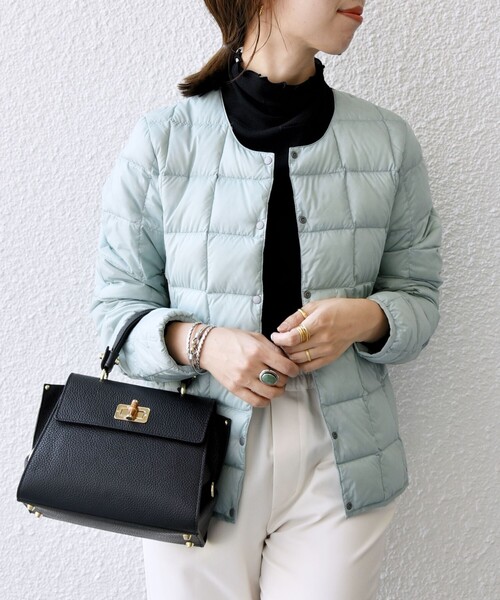 【24FW】 毎年人気の《TAION》のインナーダウンジャケット! 気軽に羽織れる万能アイテム。 〈デザインポイント〉 ジャケットやコートの下にも着用できるコンパクトなシルエットが特徴。 附属の袋にコンパクトに収納できるので、持ち運びも便利です。 サイドにポケットが付いているのも嬉しいポイントです。 〈生地・素材のポイント〉 羽毛はとても軽く、反発力に優れたダウンを使用。 表地は撥水加工を施した高密度のナイロンタフタを使用しているため、水に強く汚れも付きにくい仕様に。 ご自宅でケアが可能なのでデイリーに気兼ねなくご着用いただけます。 〈コーディネート・その他〉 シンプルなデザインなので様々なコーディネートに合わせやすく、着回し力も抜群! ジャケットやコートのインナーにはもちろん、Tシャツやカットソーに気軽に羽織れ、メインアウターとしても◎ 一着持っていると、少し寒くなりはじめる時期から真冬まで重宝すること間違いなしのアイテムです。 ▼他TAIONアイテム パイピング フード カーディガン ジャケット(品番:724-05-0052) TAION: パイピング ノーカラー キルティング コート (品番:724-05-0051) ※モールサイトによって(ハイフン/‐)抜きでの品番表記となります。 ※メーカー表示について 品番:W104 SHIPS anyサイズ:メーカーサイズ ONE SIZE:L -------------------------------------------- 生地の厚み:中間 伸縮性:無 透け感:無 光沢感:やや有 水洗い:可 -------------------------------------------- 【スタッフ着用コメント】 《HAYAMA》 身長:168cm/体型:普通/普段サイズ:M.L/着用サイズ:ONE SIZE サイズ感:丈感もちょうどよくインナーダウンとしてはもちろん、メインのアウターとしても着用できるサイズ感です。コンパクトなシルエットなので華奢みえ効果もありそうです。 コメント:暖かいのはもちろんですが、とても軽いです!一枚持っているとこれからの季節とても便利なアイテム。 少し光沢感があるので綺麗めにもカジュアルにも合わせられ汎用性も◎ -------------------------------------------- 【TAION】(タイオン) 2016年、日本より誕生したインナーダウンに特化したブランド。 ブランド名の由来は、体温。クオリティーに対して圧倒的なコストパフォーマンスによる価値の追求をスローガンとし、高品質で高機能なインナーダウンを幅広く展開しています。2018年にはアメリカにて学校の制服、スポーツメーカーからの別注などを行い、2019年はヨーロッパ、アジアでの販売もスタート。グローバルな展開を行っています。 国内外問わず、様々なブランドのサポートやコラボレーションも話題な、今注目のインナーダウンブランドです。 ※羽毛本来の優れた性質を維持する為には、最小限の通気性が必要となります。その為、若干の羽毛の噴き出しは避けられません。縫い目から羽毛が噴き出していたら、引っ張らずに表面を軽くつまんで押し戻して下さい。 ※生地表面の撥水効果は着用する度に弱まります。効果が弱まってきた際は撥水スプレーを使用する事をお勧めします。 ※30℃のぬるま湯で中性洗剤を薄めに溶かしてから短時間で洗濯して下さい。(洗剤は十分に溶かして下さい) ※色移りする事がありますので、必ず単独で洗濯して下さい。 ※洗濯物はクリーニングネットに入れてから片側をそれぞれ20回程度軽く押し洗いして下さい。(もみ洗いはお避け下さい) ※水につけたままの長時間の放置はお避け下さい。 ※水洗いの後は入念なすすぎを行い、洗剤を残さないで下さい。 ※絞りは遠心脱水機で軽く1分程度、クリーニングネットに入れて行って下さい。製品を直接絞りますと、型くずれの原因になりますのでお避け下さい。 ※洗濯後はすぐに形を整え、日陰で吊り干しして下さい。直射日光や機械的な高温での乾燥はお避け下さい。 ※タンブラー乾燥はお避け下さい。 ※染料の性質上汗や摩擦により色落ちや色移りすることがありますので十分にご注意下さい。 ※強い日光(又は照明)を長時間受けますと変色の恐れがありますので、ご着用及び保管の際には、ご注意下さい。 ※28(ブラウン)に関してはインクジェットプリントを使用した商品です。 ※ご使用中に摩擦などにより淡色(特に白)に色移りする場合がございますのでご注意ください。 ※汗や雨など濡れた状態で、他の物との接触も色移りの原因となりますので十分にご注意ください。 ※屋外での撮影画像は、光の当たり具合で色味が多少異なって見える場合があります。商品の色味は、スタジオでの詳細画像をご参照ください。 ※末永く愛用頂く為に、アテンションタグ・洗濯ネームを必ずご確認の上、着用又はお取り扱い下さい。 ※画像の商品はサンプルです。 実際の商品と仕様、加工、サイズが若干異なる場合がございます。