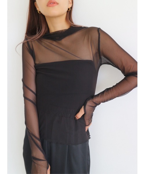 【 “お気に入り登録”でお買いものが便利に! 】 ▼商品のお気に入り登録完売カラーの再入荷時や、ラスト1点の時、セール開始時にお知らせします。 ▼ブランドのお気に入り登録新商品や再入荷、セール情報など、 いち早くTRUNC88のお得な情報を受け取ることができます。ぜひご活用ください。 【Item Comment】 程よいシアー感が旬な印象のハイネックトップス。 袖口に施したフィンガーホールは、 さっと指を通すとどこかこなれた雰囲気に。 メッシュ素材は適度に伸縮性があり、 肌当たりの良い滑らかな着心地になっています。 首元や袖口、裾はメロウ仕上げで女性らしさをプラス。 ちらっと覗かせるだけでも、オシャレ上級者に見せてくれる レイヤードコーデのマストアイテムです。 【Coordinate】 ジャケットやシャツのインナーに合わせて 抜け感を演出するスタイリングもおすすめ◎ ワンピやジャンスカのインナーとしても スウェットやカーディガンを合わせたレイヤードなど、 ロングシーズン活躍する一着です。 【Color Variation】 BLACK ※着用画像は実際の商品とお色味が多少異なる場合がございます。 【Material】 裏地:□あり ■なし 厚み:■薄手 □普通 □厚手 透け感:■あり □なし 伸縮性:■あり □なし 光沢感:□あり ■なし 【Model】 Director(佐野真依子):162cm